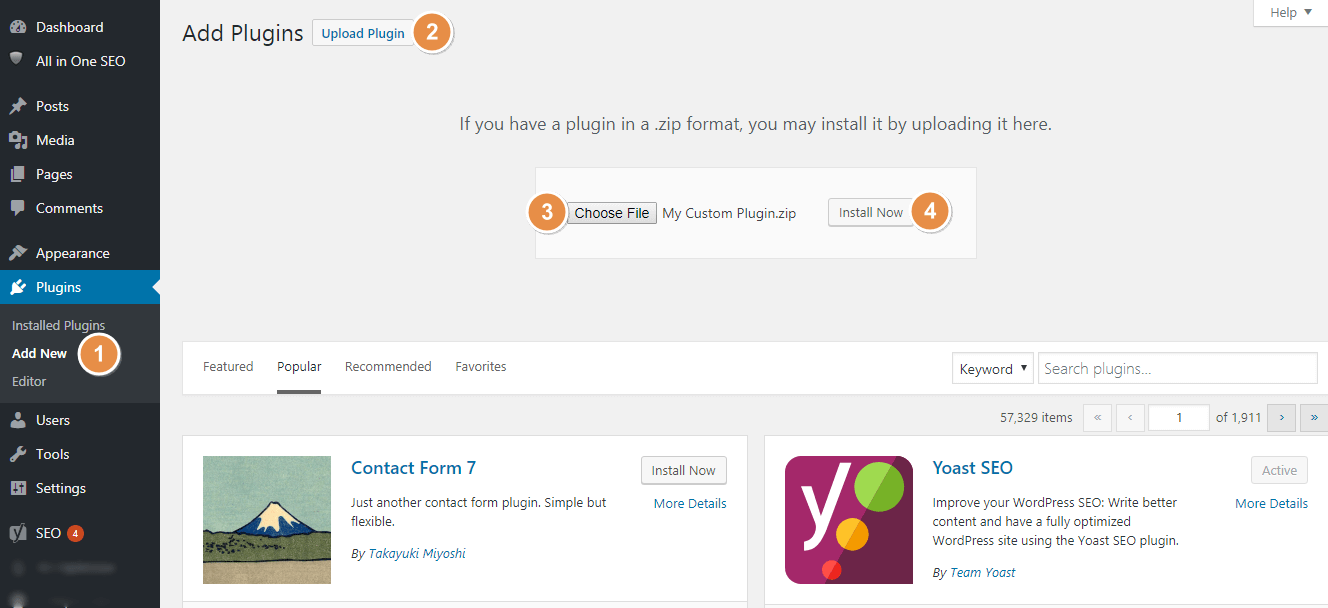 Also, we use the Upload Plugin option to install paid or downloaded plugins from third-party sources.