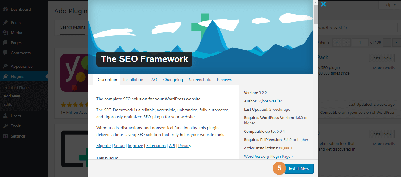 5. Now if you know which plugin to Install, you can simply click on the ‘Install Now‘ button, from the ‘More details’ screen or search results, to install it for your website.