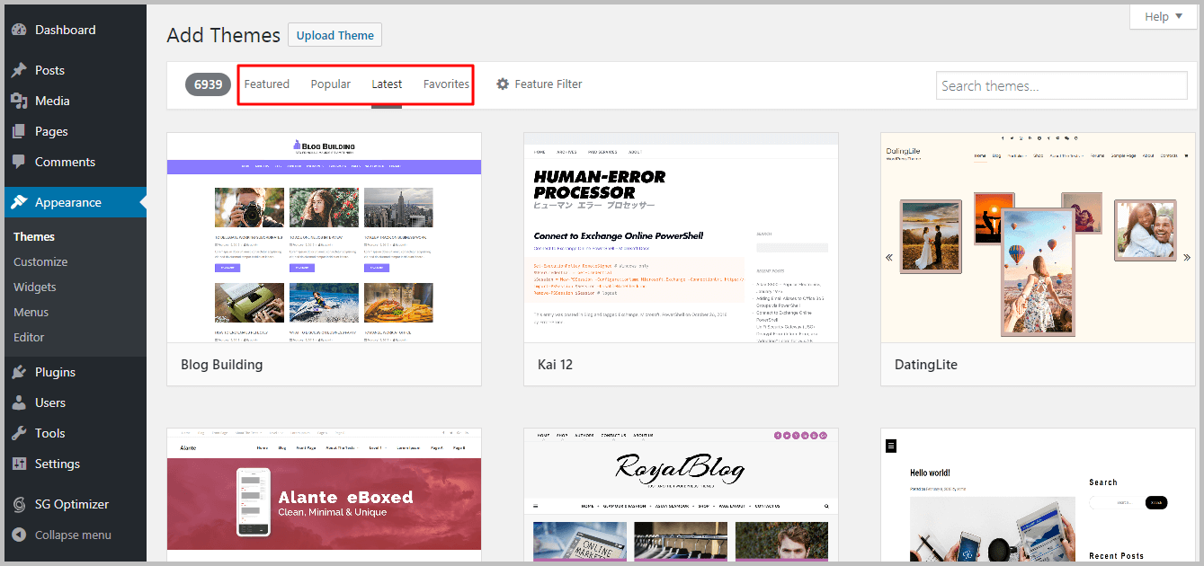 Also, I use the ‘Upload Theme’ option to install paid themes from third-party sources.